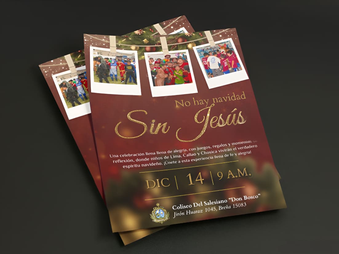 Para el Colegio Salesiano, desarrollé un flyer navideño con el objetivo de promocionar su evento por temporada navideña. Siguiendo las indicaciones del cliente, trabajé en Adobe InDesign para componer una pieza gráfica que reflejara el espíritu navideño y la identidad de la institución.